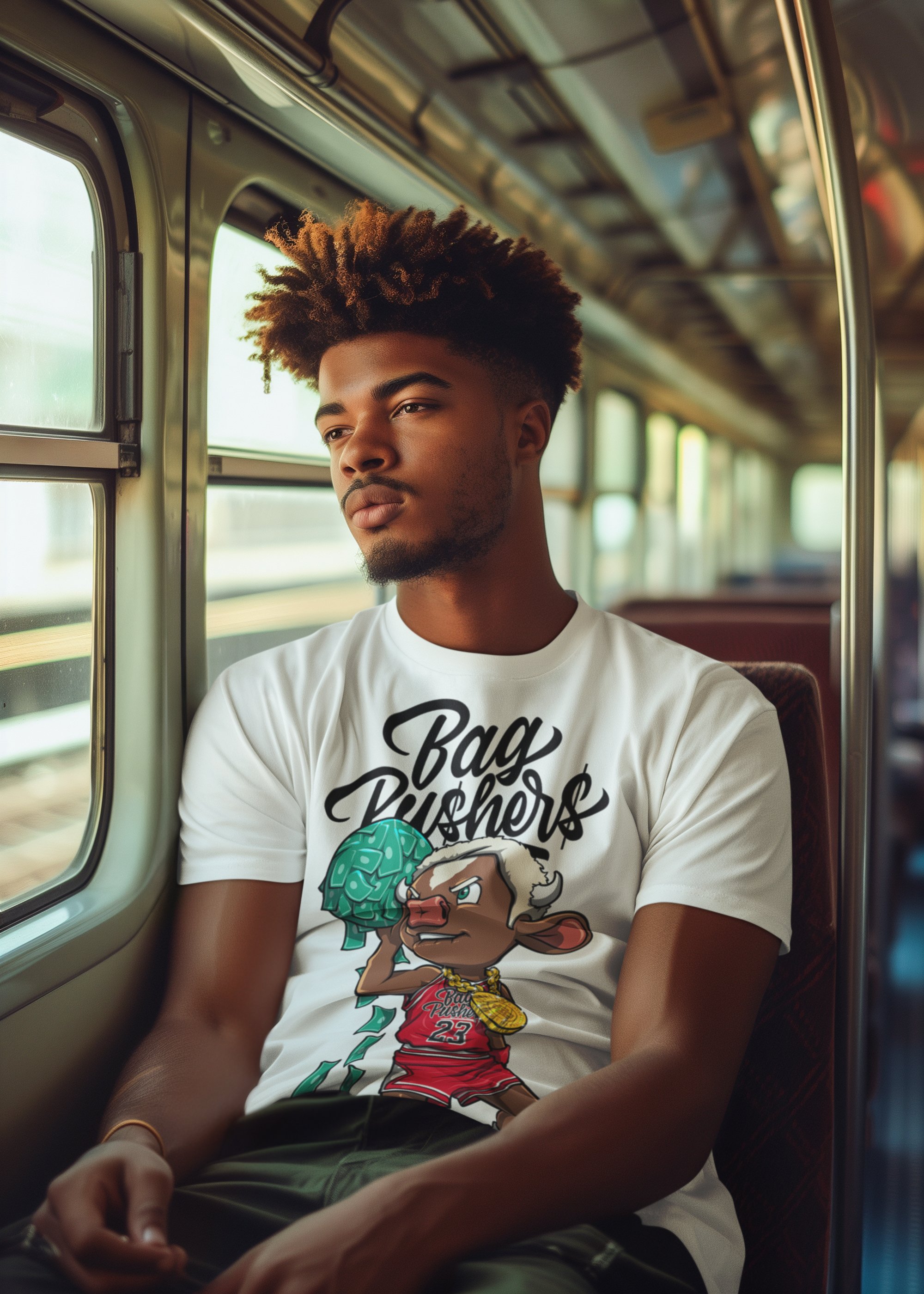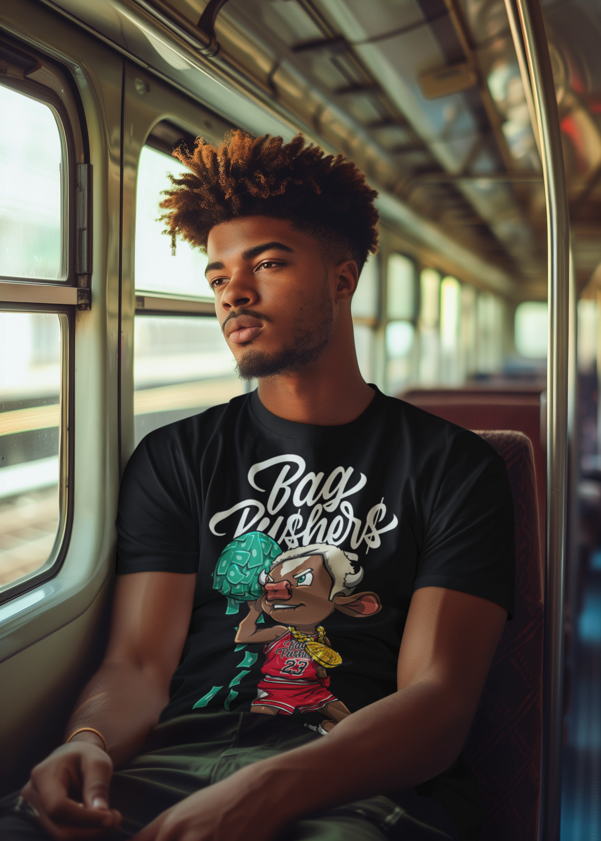 Bag Pushers was born from the unrelenting grind and the unspoken code of hustlers, those who make moves to secure the bag in every corner of life. The brand’s founders, having risen from streets to business suites, understood the grind intimately. They envisioned Bag Pushers as more than a clothing line; it’s a badge for those who live with a “bullish mentality,” pushing through barriers with purpose.